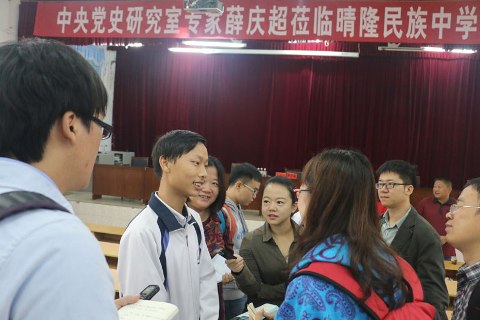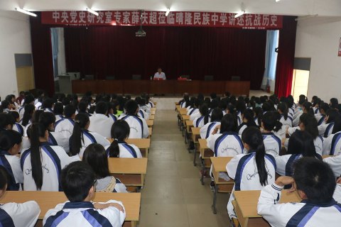 人民網(wǎng)9月16日電(鄧志慧 李小煒 于紅林 喬外)由中央網(wǎng)信辦、中央黨史研究室指導(dǎo),人民網(wǎng)聯(lián)合8省區(qū)市共同主辦的“尋找歷史記憶 緬懷抗戰(zhàn)英烈——紀(jì)念抗日戰(zhàn)爭勝利70周年系列活動”第四站走進貴州!包h史專家進校園”是此次系列活動的重要組成部分,16日上午,著名黨史專家、中央黨史研究室宣教局原副局長薛慶超在貴州省晴隆民族中學(xué)為該校師生上了一堂生動的抗戰(zhàn)歷史課,得到廣大師生一致好評。