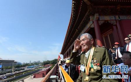新華網(wǎng)長(zhǎng)春10月17日電(記者 田甜)9月3日,紀(jì)念中國(guó)人民抗日戰(zhàn)爭(zhēng)暨世界反法西斯戰(zhàn)爭(zhēng)勝利70周年大會(huì)在北京舉行。在那場(chǎng)盛大的閱兵式上,一位抗戰(zhàn)老兵在天安門城樓上向受閱部隊(duì)全程起立敬軍禮的一幕,戳中了很多人的淚點(diǎn),無數(shù)人為之動(dòng)容。近日,記者隨“尋找歷史記憶 緬懷抗戰(zhàn)英烈”采訪團(tuán)來到這位“敬禮老兵“史保東老人的家中,探訪昔日戰(zhàn)場(chǎng)上的這位鐵血戰(zhàn)士,回憶那段激情燃燒的抗戰(zhàn)歲月。
