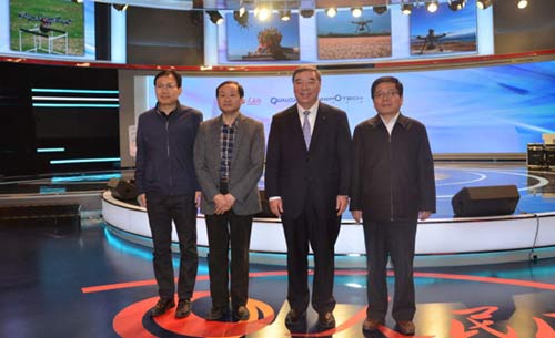 (從左至右)國(guó)資委新聞中心副主任蘇桂鋒、人民網(wǎng)總編輯余清楚、中國(guó)建筑材料集團(tuán)董事長(zhǎng)宋志平、國(guó)家網(wǎng)信辦網(wǎng)絡(luò)新聞信息傳播局副局長(zhǎng)侯云灝