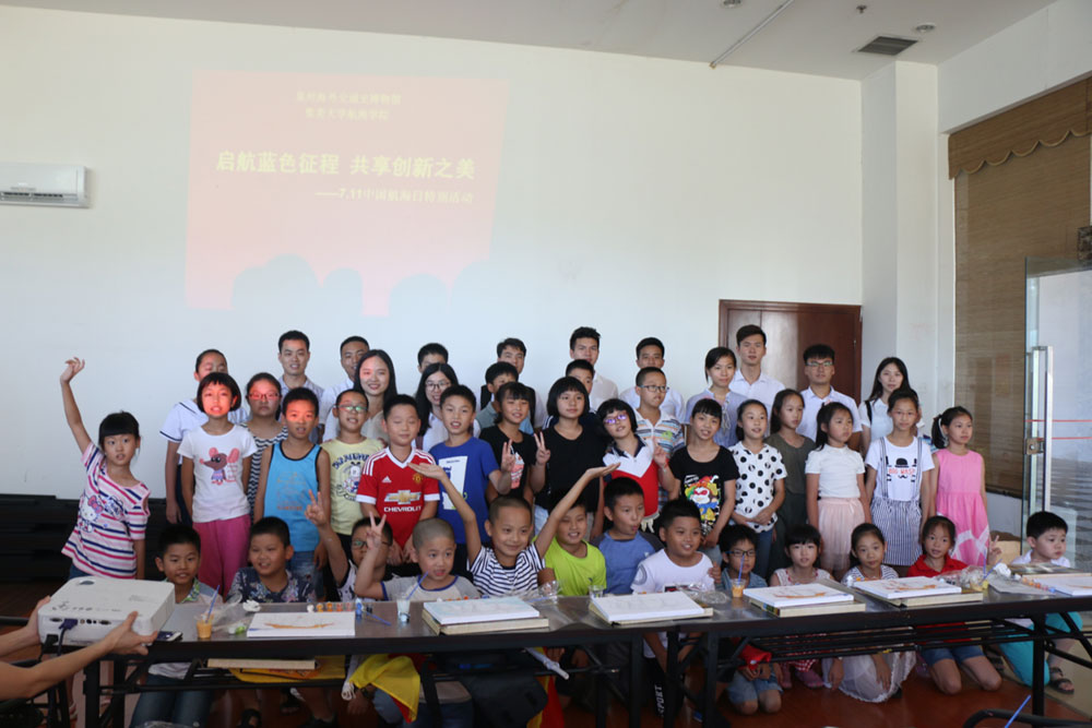 實踐隊與泉州海外交通史博物館共同開展了“啟航藍色征程,共享創(chuàng)新之美——7.11中國航海日”特別活動,向30位小朋友講解航海小知識,介紹古老的旗語和莫爾斯電碼等!跋M覀兊暮胶N幕軌騻鞑コ鋈,從娃娃抓起” 隊長胡栩禎說。