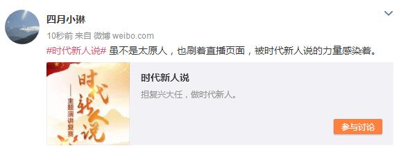 #時(shí)代新人說#微博話題下不乏這樣的留言:“太原乃至全國,都被‘時(shí)代新人說’刷屏了”、“雖不是太原人,也刷著直播頁面,被時(shí)代新人說的力量感染著”。