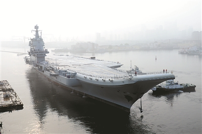 2018年5月13日,我國第二艘航母從大連造船廠碼頭啟航,赴相關(guān)海域執(zhí)行海上試驗任務(wù)(圖片來源:新華社)