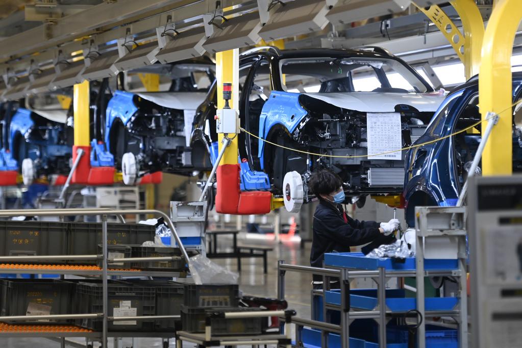 工人在某品牌汽車余姚工廠總裝車間作業(yè)。 新華社記者 黃宗治 攝
